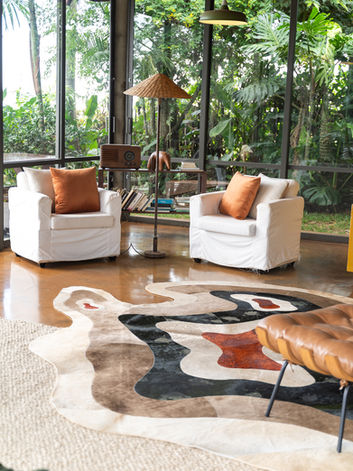 Nossos tapetes unem design moderno e artesanato tradicional. Cada peça é feita à mão no Brasil e produzida sob encomenda, com total personalização de tamanho e material.